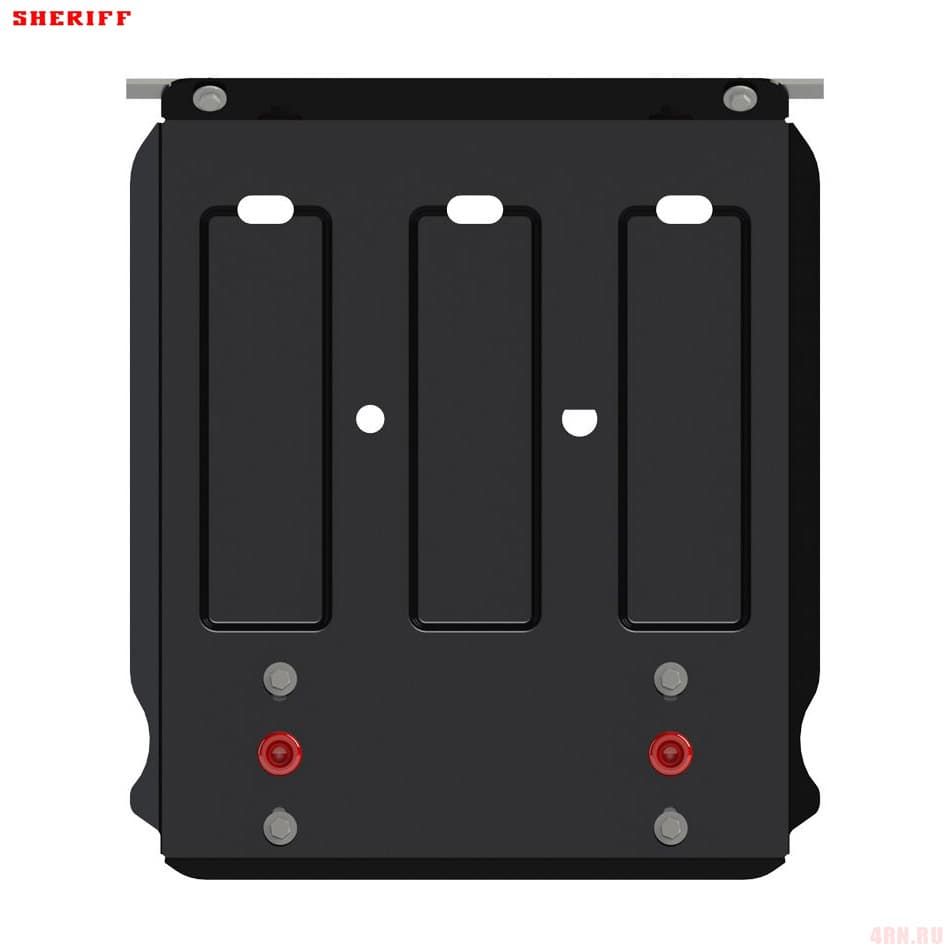 Защита картера Sheriff нужна для сохранности узлов и агрегатов, находящихся на днище авто. Она надежно защитит двигательный отсек вашей машины от повреждений. Также она защищает моторный отсек от влаги, грязи, и предусматривает наличие металлических крыльев, которые выполняют функцию пыльника.