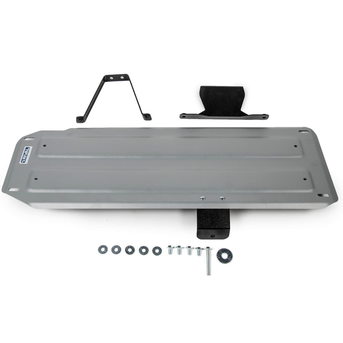 Стойкое порошковое окрашивание позволяет сохранить внешний вид, защитит от царапин, предотвратит коррозию. Также имеется утопленный крепеж для предотвращения срывов. Крепеж не образует с алюминием гальваническую пару. Защита спроектирована индивидуально для автомобиля, что позволяет устанавливать ее в штатные места без доработки кузова за 10 мин.