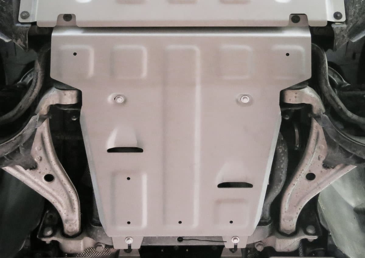 Стойкое порошковое окрашивание позволяет сохранить внешний вид, защитит от царапин, предотвратит коррозию. Также имеется утопленный крепеж для предотвращения срывов. Крепеж не образует с алюминием гальваническую пару. Защита спроектирована индивидуально для автомобиля, что позволяет устанавливать ее в штатные места без доработки кузова за 10 мин.