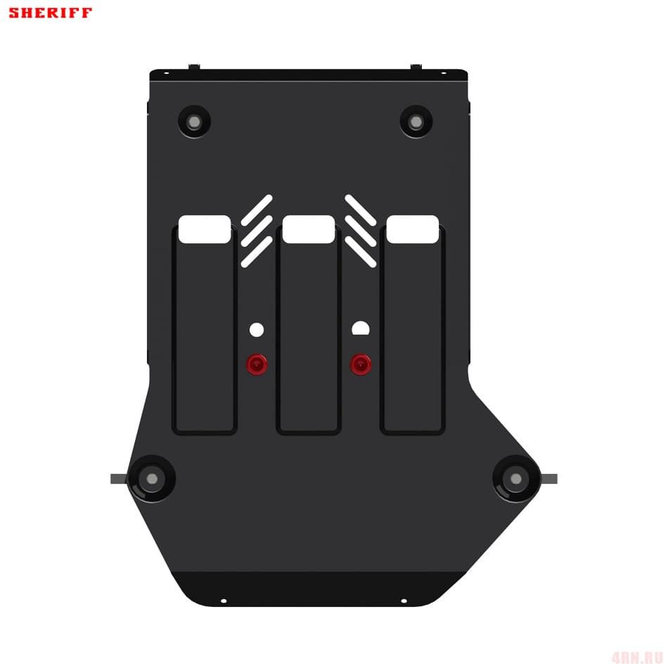 Защита картера Sheriff нужна для сохранности узлов и агрегатов, находящихся на днище авто. Она надежно защитит двигательный отсек вашей машины от повреждений. Также она защищает моторный отсек от влаги, грязи, и предусматривает наличие металлических крыльев, которые выполняют функцию пыльника.