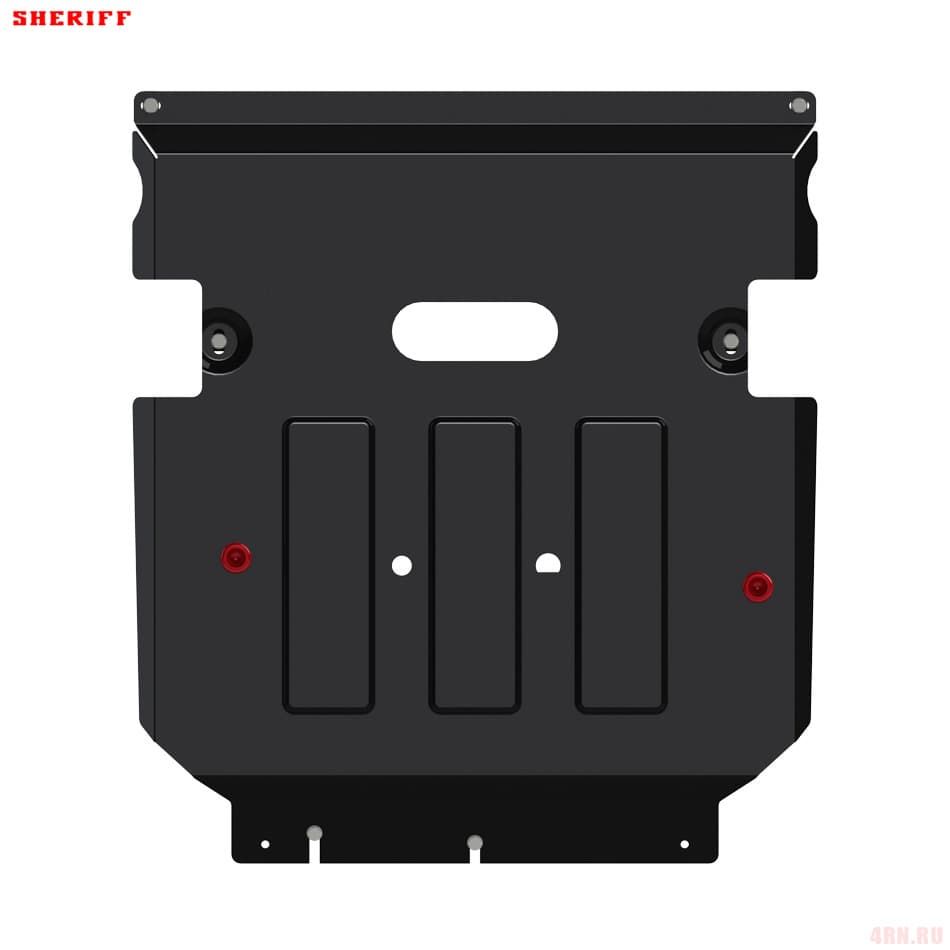Защита картера Sheriff нужна для сохранности узлов и агрегатов, находящихся на днище авто. Она надежно защитит двигательный отсек вашей машины от повреждений. Также она защищает моторный отсек от влаги, грязи, и предусматривает наличие металлических крыльев, которые выполняют функцию пыльника.