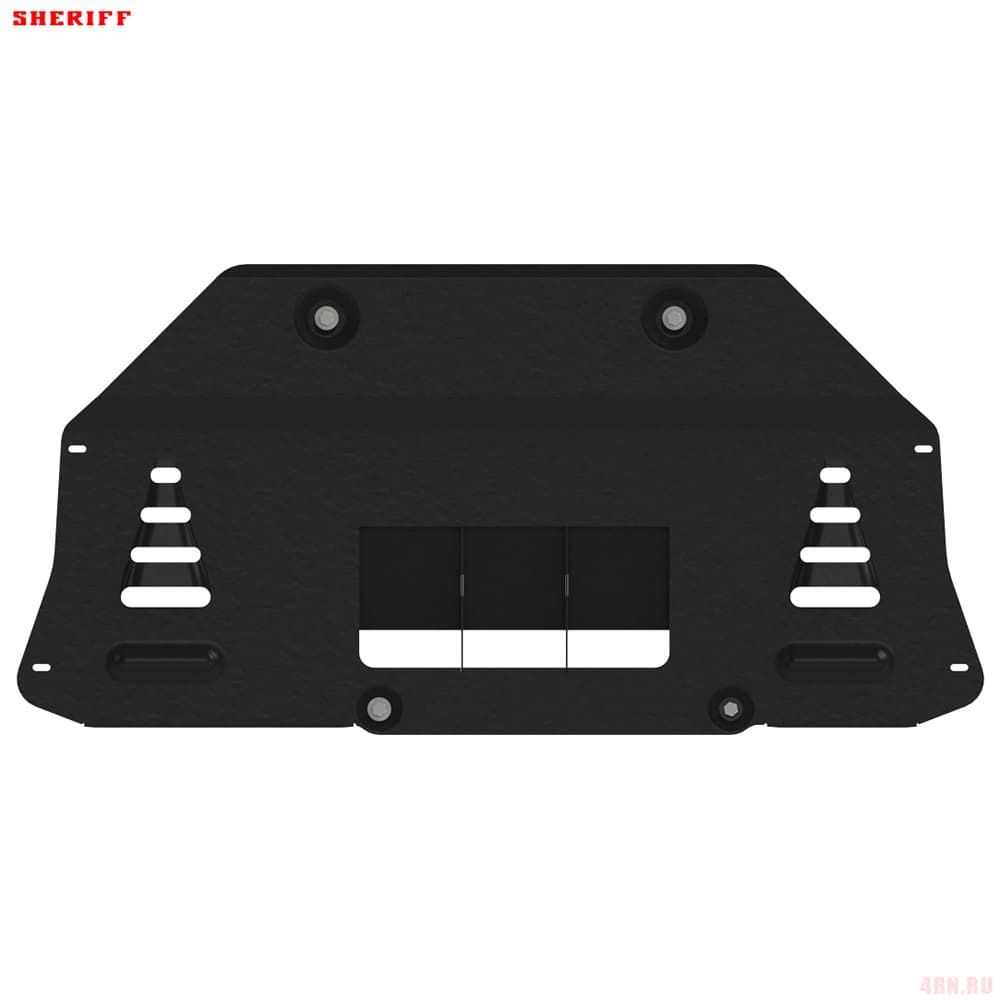 Защита картера Sheriff нужна для сохранности узлов и агрегатов, находящихся на днище авто. Она надежно защитит двигательный отсек вашей машины от повреждений. Также она защищает моторный отсек от влаги, грязи, и предусматривает наличие металлических крыльев, которые выполняют функцию пыльника.