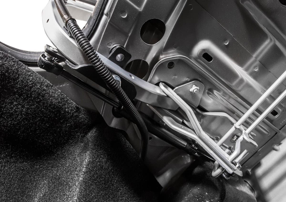 Газовые упоры позволяют легко открыть багажник одним движением руки и автоматически зафиксировать его в нижнем положении.