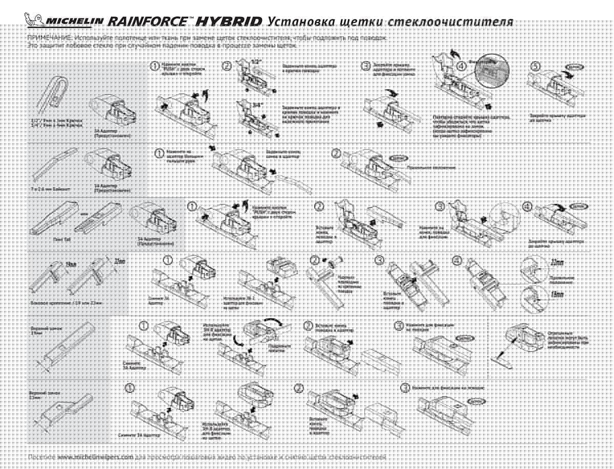 Гибридная щетка стеклоочистителя MICHELIN имеет следующие особенности: