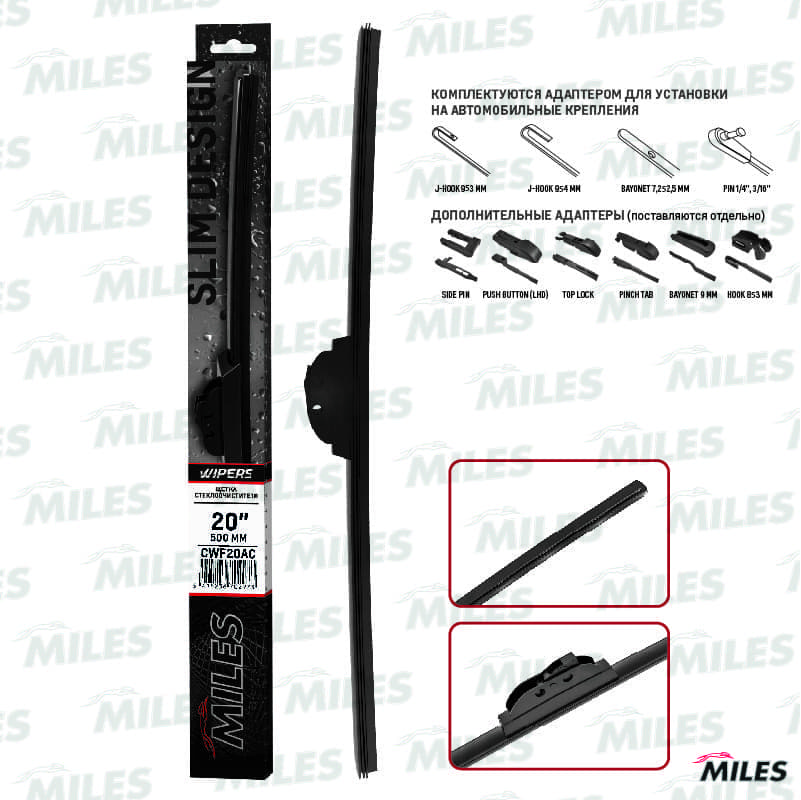 Щётка с/о 500мм бескаркасная (HOOK 9x3/9x4) № CWF20AC
