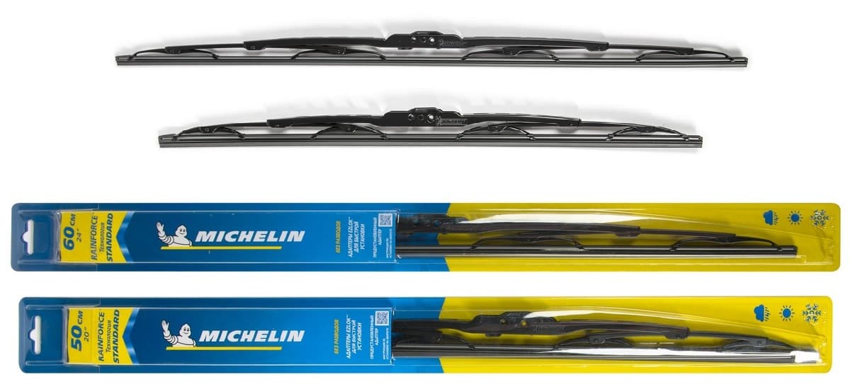 Щетка от производителя MICHELIN, сезон эксплуатации - всесезонные, тип щеток - каркасные, расположение - лобовое стекло, комплект - 2 щетки (длина: 600 и 500 мм), крепление - крюк, штыковой замок, штырь. Щетки MICHELIN долговечны в использовании и обеспечивают качественное очищение стекла.