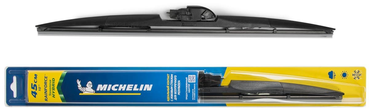 Щетка от производителя MICHELIN, сезон эксплуатации - всесезонные, тип щеток - гибридные, комплект - 1 щетка (длина: 450 мм), крепление - верхний замок, крюк, штыковой замок, боковой зажим, боковой штырь. Щетки MICHELIN долговечны в использовании и обеспечивают качественное очищение стекла.