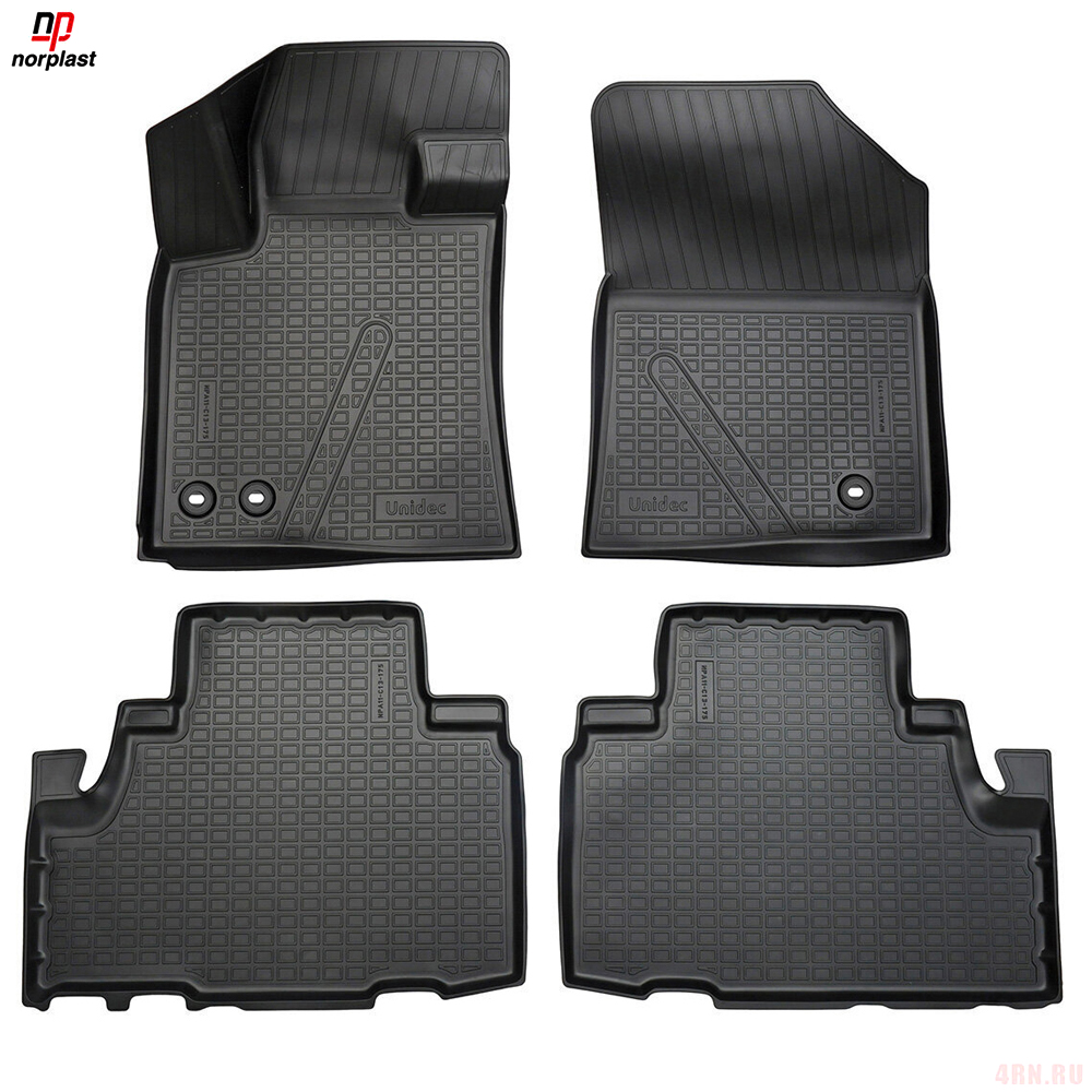 Разрабатываются точно под контуры конкретного автомобиля, что обеспечивает 100% идеальную применяемость. Они идеально прилегают к полу автомобиля в отведенном им месте.