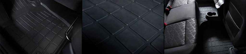 - Коврики снабжены бортиками высотой 2,5 см, благодаря чему они отлично защищают салон от неблагоприятных внешних факторов: влаги, грязи и реагентов. На обратной стороне ковров находятся шипы противоскольжения, которые препятствуют скольжению изделий по полу салону, а зона под ногами водителя имеет увеличенную толщину для максимально комфортного вождения.