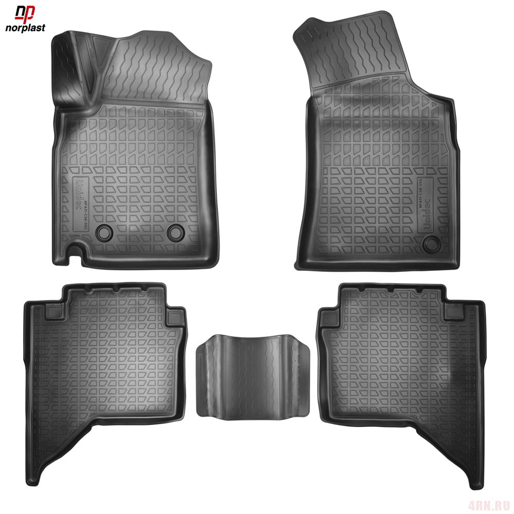 Имеют не скользящую поверхность и обеспечивают безопасное управление автомобилем, а также контролем ситуации на дороге. Изготавливаются из полиуретана, который по всем своим характеристикам превосходит резину. Во-первых, он обладает гораздо большим диапазоном твердости. Во-вторых, меньше подвержен стиранию и эластичен. В-третьих, он менее подвержен разрыву и деформациям. Коврик стоек к маслу, бензину и кислотам.