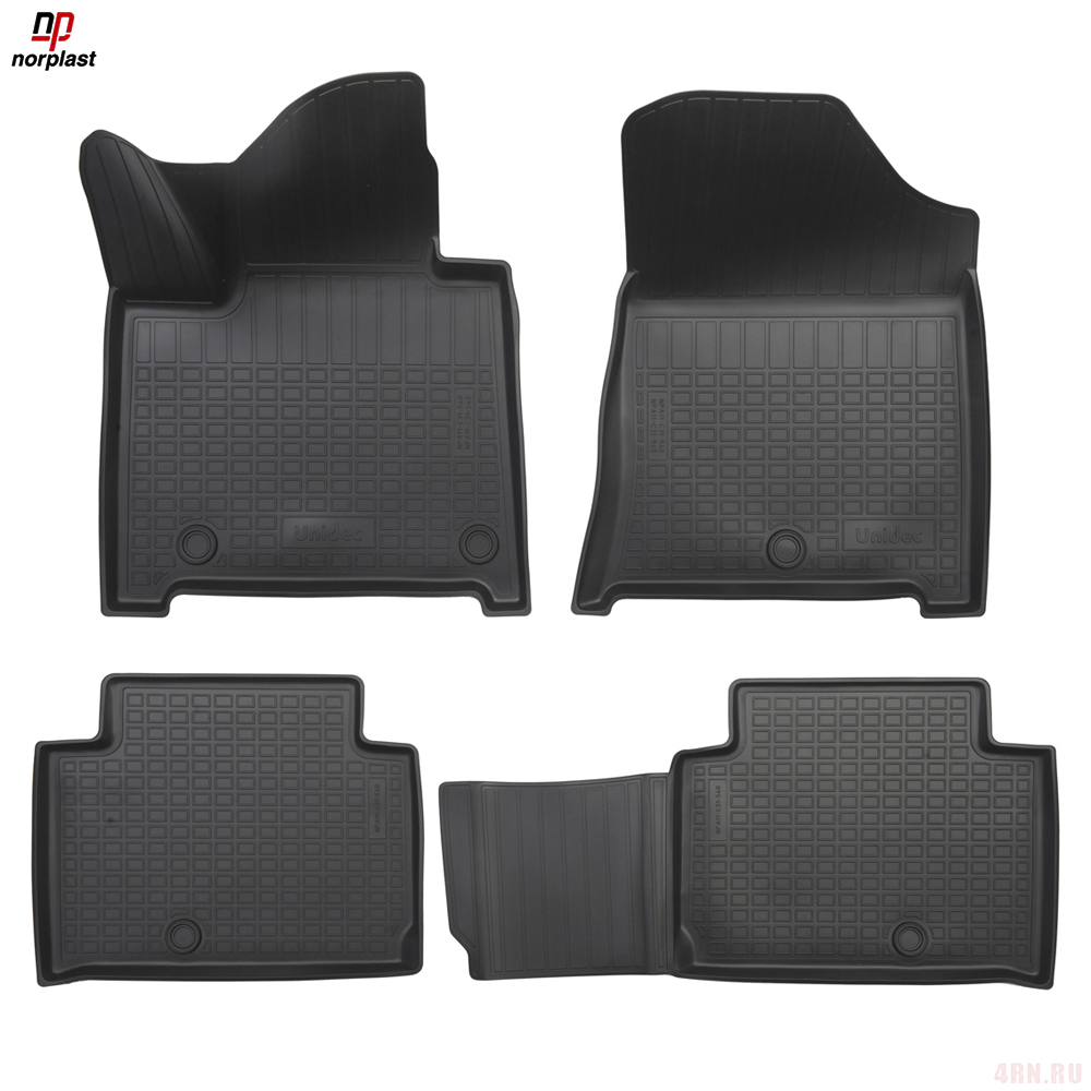 Разрабатываются точно под контуры конкретного автомобиля, что обеспечивает 100% идеальную применяемость. Они идеально прилегают к полу автомобиля в отведенном им месте.