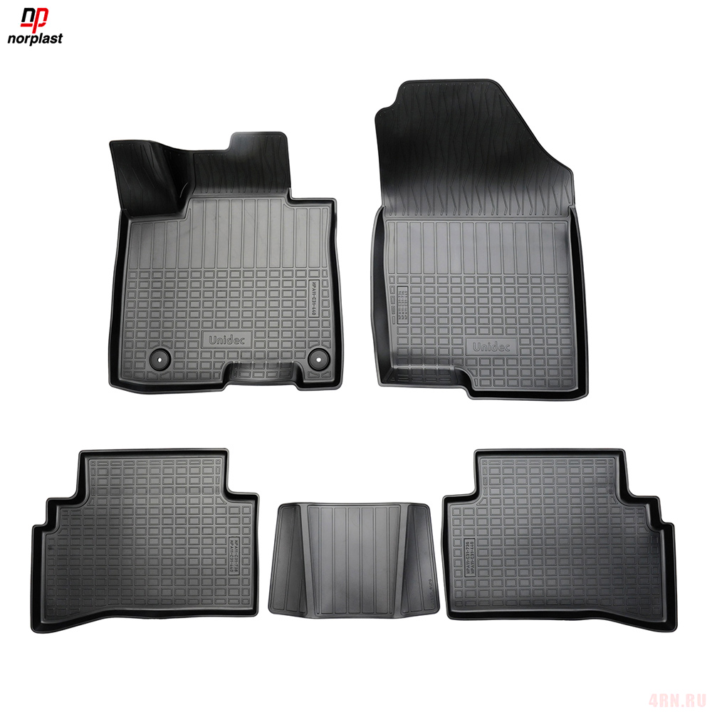 Разрабатываются точно под контуры конкретного автомобиля, что обеспечивает 100% идеальную применяемость. Они идеально прилегают к полу автомобиля в отведенном им месте.