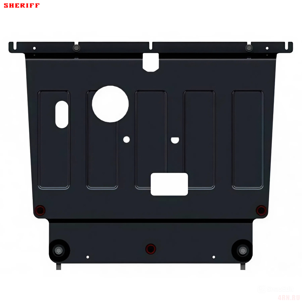 Защита картера Sheriff нужна для сохранности узлов и агрегатов, находящихся на днище авто. Она надежно защитит двигательный отсек вашей машины от повреждений. Также она защищает моторный отсек от влаги, грязи, и предусматривает наличие металлических крыльев, которые выполняют функцию пыльника.