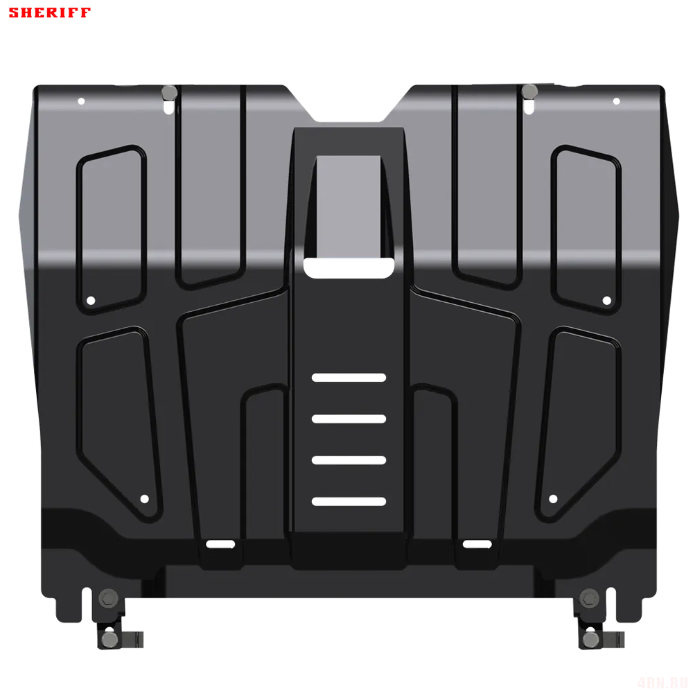 Защита картера Sheriff нужна для сохранности узлов и агрегатов, находящихся на днище авто. Она надежно защитит двигательный отсек вашей машины от повреждений. Также она защищает моторный отсек от влаги, грязи, и предусматривает наличие металлических крыльев, которые выполняют функцию пыльника.