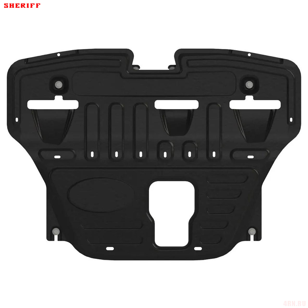 Защита картера Sheriff нужна для сохранности узлов и агрегатов, находящихся на днище авто. Она надежно защитит двигательный отсек вашей машины от повреждений. Также она защищает моторный отсек от влаги, грязи, и предусматривает наличие металлических крыльев, которые выполняют функцию пыльника.