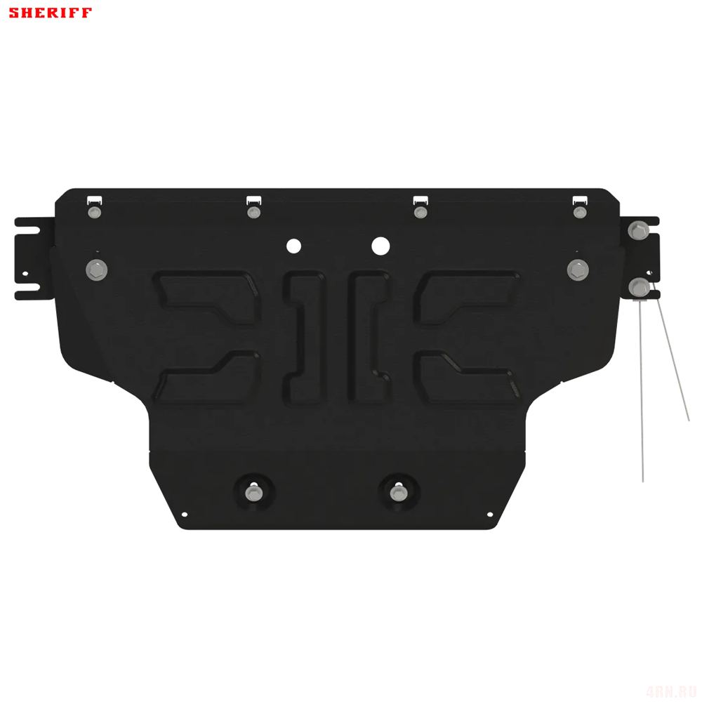Защита картера Sheriff нужна для сохранности узлов и агрегатов, находящихся на днище авто. Она надежно защитит двигательный отсек вашей машины от повреждений. Также она защищает моторный отсек от влаги, грязи, и предусматривает наличие металлических крыльев, которые выполняют функцию пыльника.