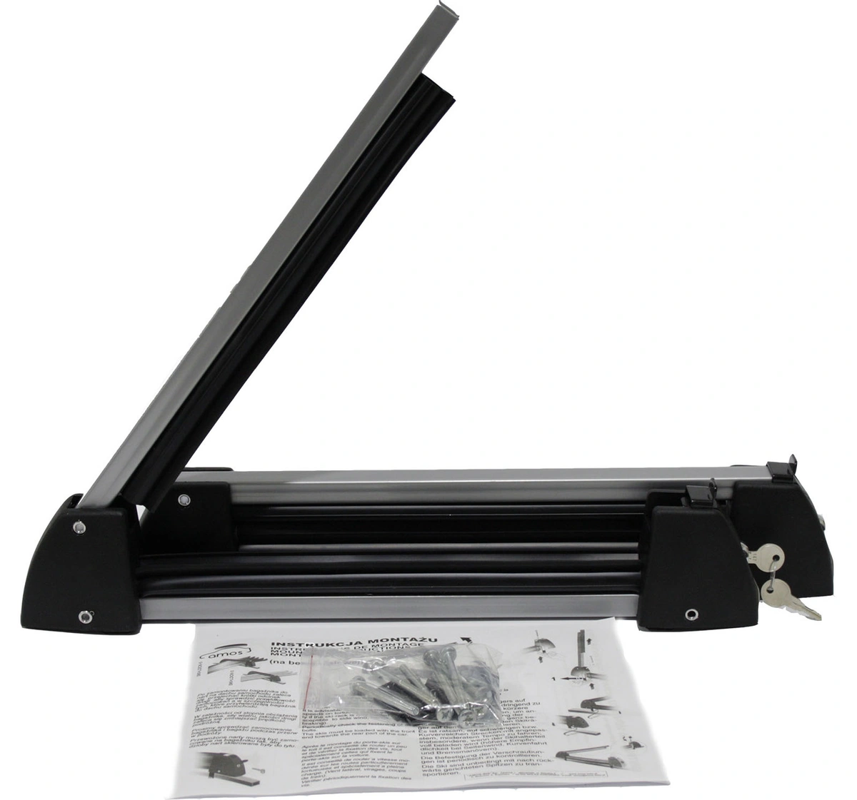 На аэродинамические дуги данный багажник устанавливается при помощи специальных T - образных болтов. На обычные прямоугольные дуги крепление устанавливается без дополнительных аксессуаров.
