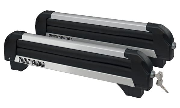 Menabo Iceberg – стильное, современное, легкое и вместительное крепление от итальянской фирмы. Просто в установке, практично, способно вместить до 4 пар лыж, при собственном весе всего в 1,5 кг. Соответствует требованиям TÜV.