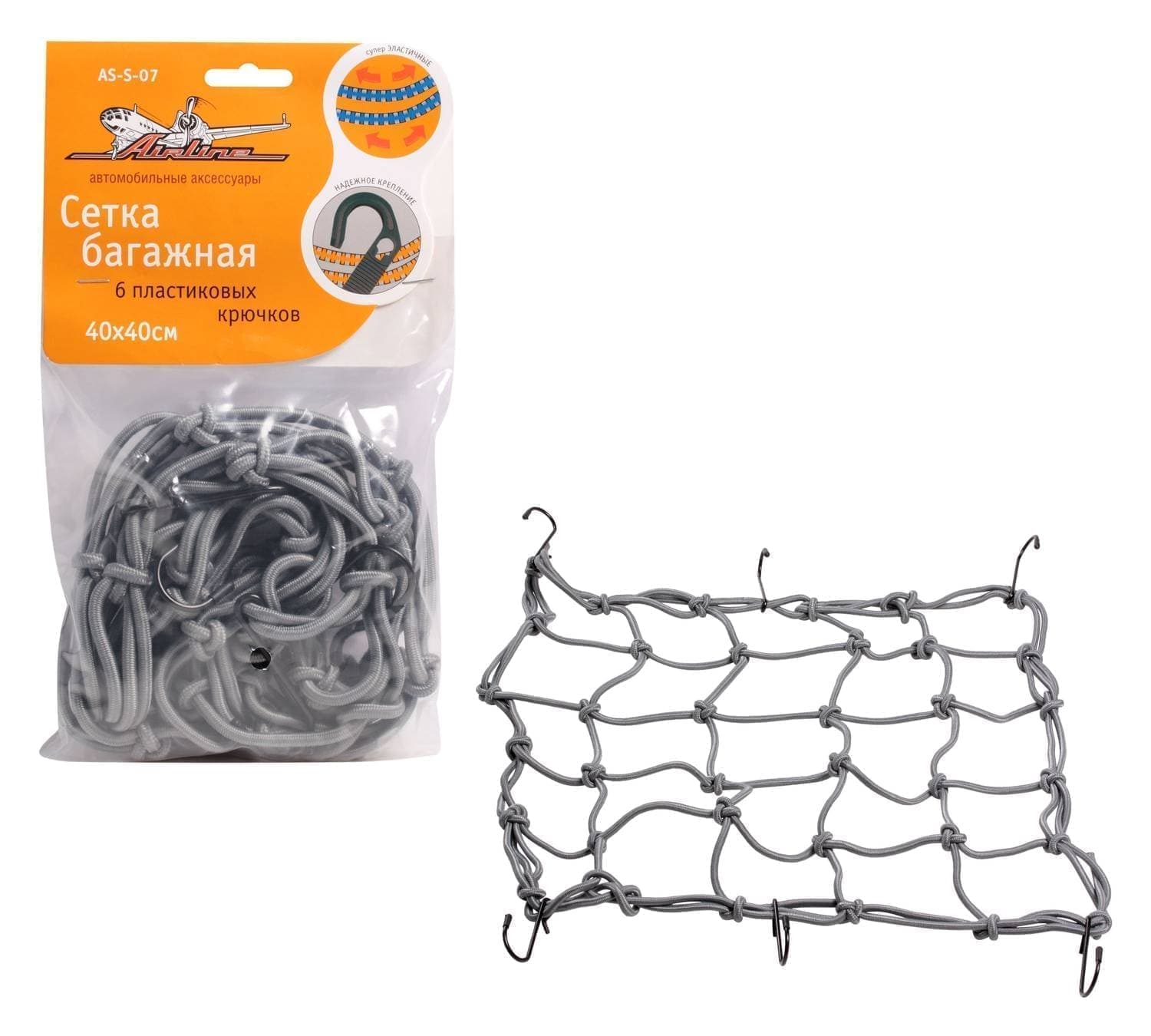 Сетка с габаритными показателями 40х40 см предназначена для фиксации багажа малого размера в салоне автомобиля или на борту малогабаритной транспортной техники (мотоциклы, квадроциклы, снегоходы). Крепежом для багажной сетки служат 6 крючков, изготовленных из прочного пластика. Специальный материал, из которого изготовлены жгуты сетки, обеспечивают изделию эластичность и надежность. Так же пластиковые крючки не царапают и не повреждают лакокрасочную поверхность автомобиля.