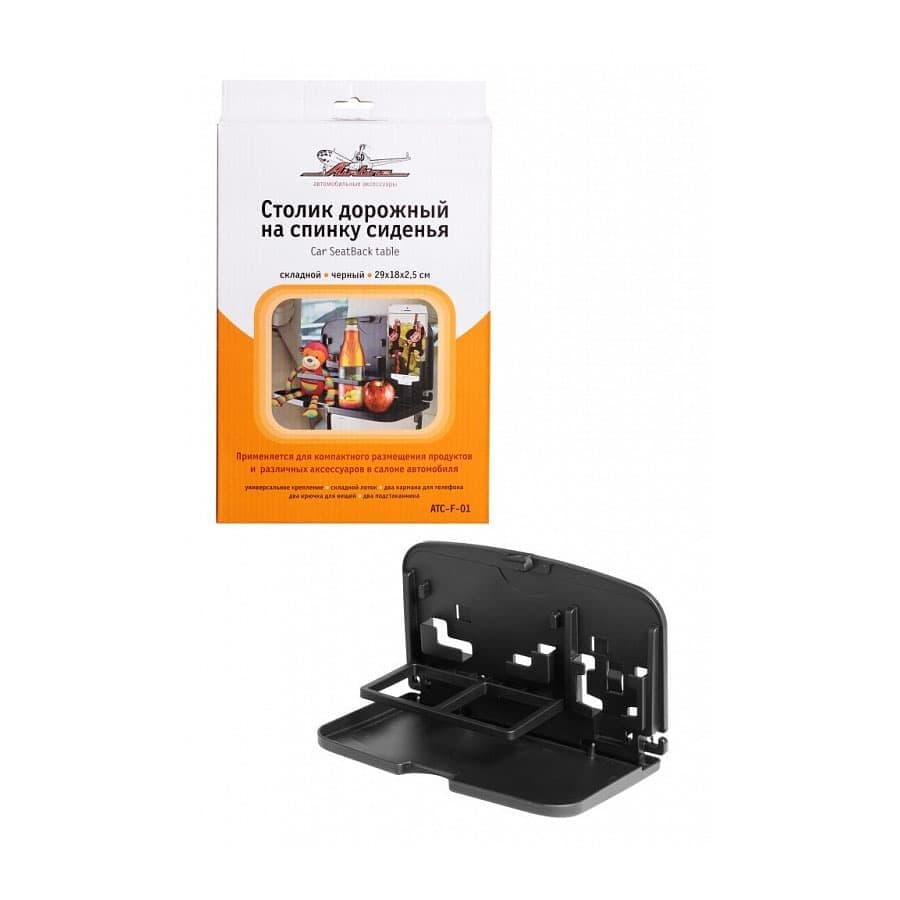 Столик предназначен для компактного размещения продуктов питания, напитков и различных аксессуаров на задней спинке водительского или пассажирского сиденья. Благодаря своему складному корпусу не занимает много места в салоне автомобиля. Столик снабжен двумя карманами с горизонтальным и вертикальным креплением телефона для удобного просмотра видео файлов, а также имеет два подстаканника и крючки для вещей. Складной столик AIRLINE будет незаменимым помощником при длительных поездках и путешествиях.