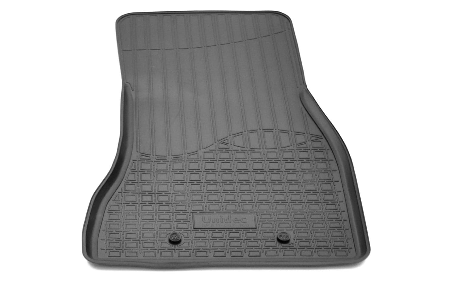 Имеют не скользящую поверхность и обеспечивают безопасное управление автомобилем, а также контролем ситуации на дороге. Изготавливаются из полиуретана, который по всем своим характеристикам превосходит резину. Во-первых, он обладает гораздо большим диапазоном твердости. Во-вторых, меньше подвержен стиранию и эластичен. В-третьих, он менее подвержен разрыву и деформациям. Коврик стоек к маслу, бензину и кислотам.