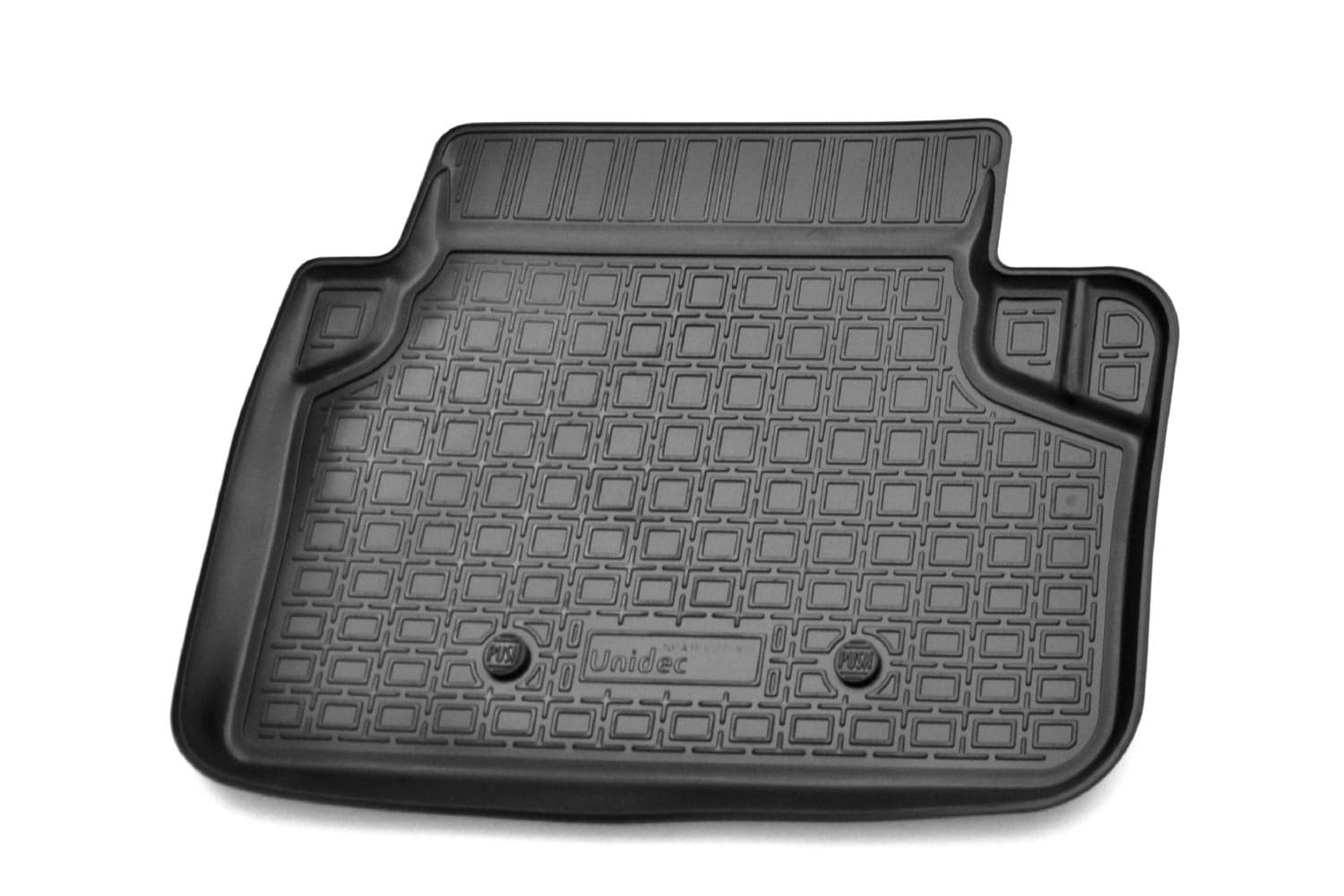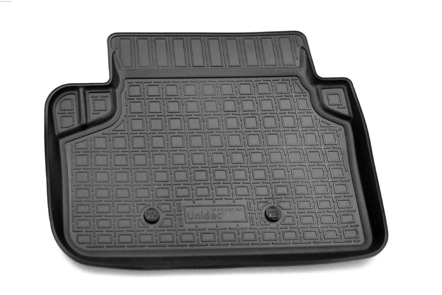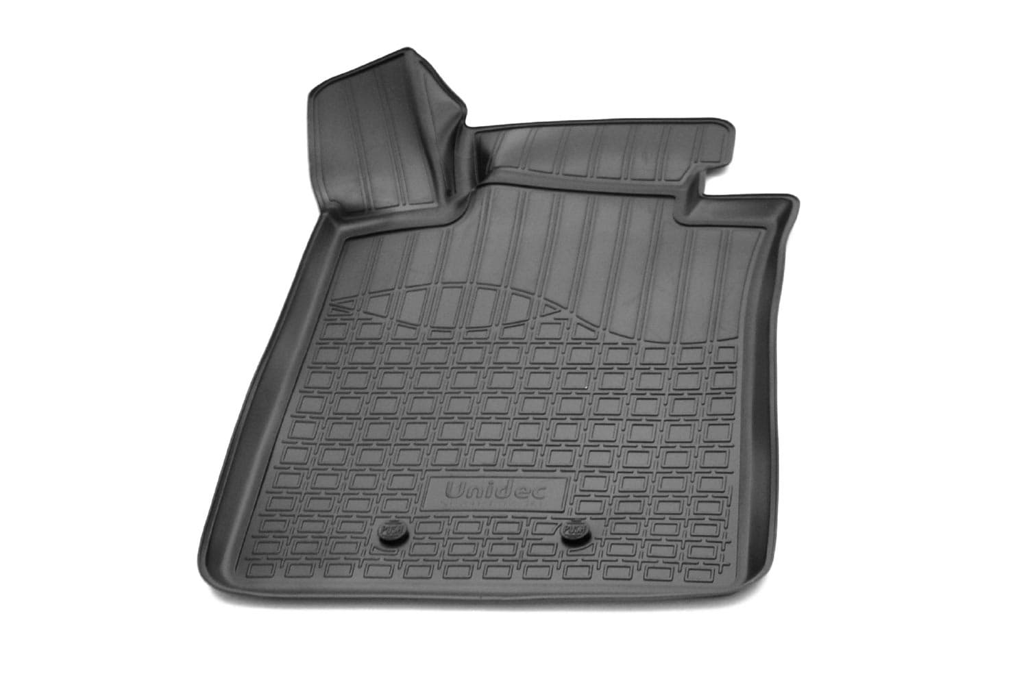 Разрабатываются точно под контуры конкретного автомобиля, что обеспечивает 100% идеальную применяемость. Они идеально прилегают к полу автомобиля в отведенном им месте.