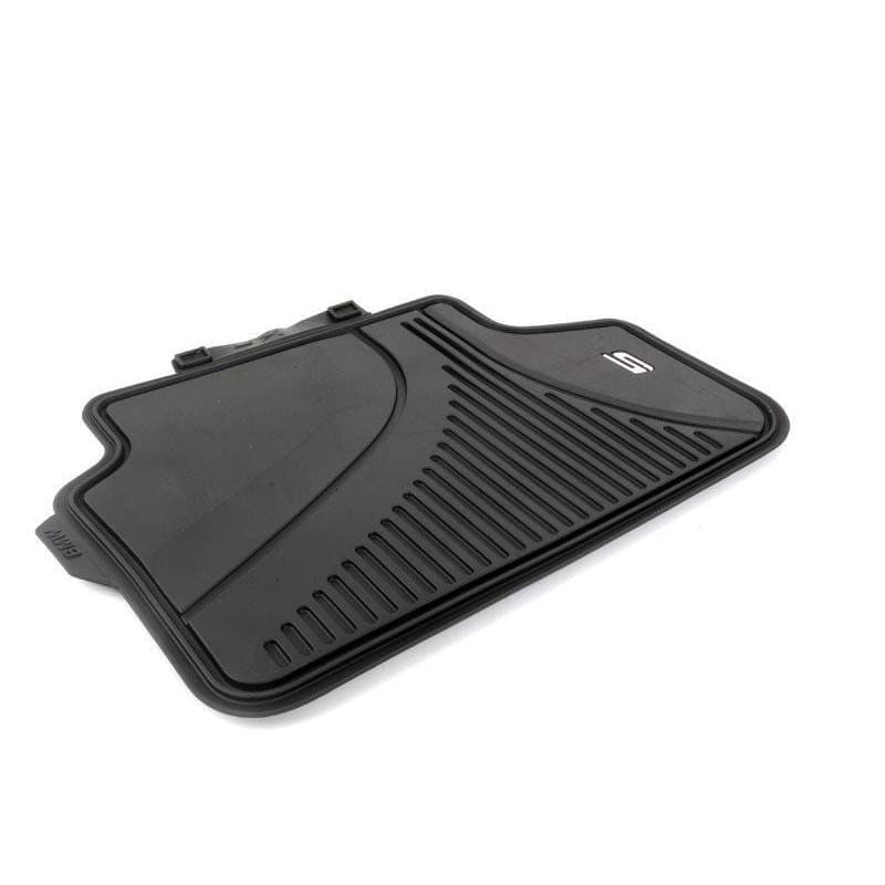 Элегантные и точно подходящие по размеру износостойкие всепогодные напольные коврики с высоким бортиком не только защищают заднюю часть салона от воды и грязи, но и одновременно предохраняют обувь от образовавшейся на коврике лужи. Выполнены в черном цвете со вставкой из нержавеющей стали в форме цифры 5.