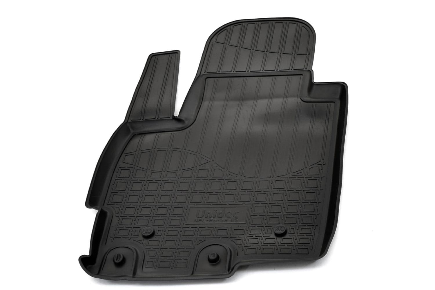 Имеют не скользящую поверхность и обеспечивают безопасное управление автомобилем, а также контролем ситуации на дороге. Изготавливаются из полиуретана, который по всем своим характеристикам превосходит резину. Во-первых, он обладает гораздо большим диапазоном твердости. Во-вторых, меньше подвержен стиранию и эластичен. В-третьих, он менее подвержен разрыву и деформациям. Коврик стоек к маслу, бензину и кислотам.