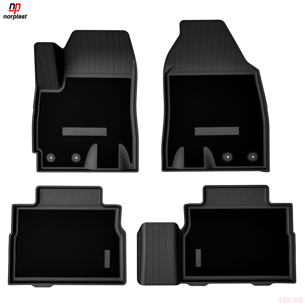 Разрабатываются точно под контуры конкретного автомобиля, что обеспечивает 100% идеальную применяемость. Они идеально прилегают к полу автомобиля в отведенном им месте.