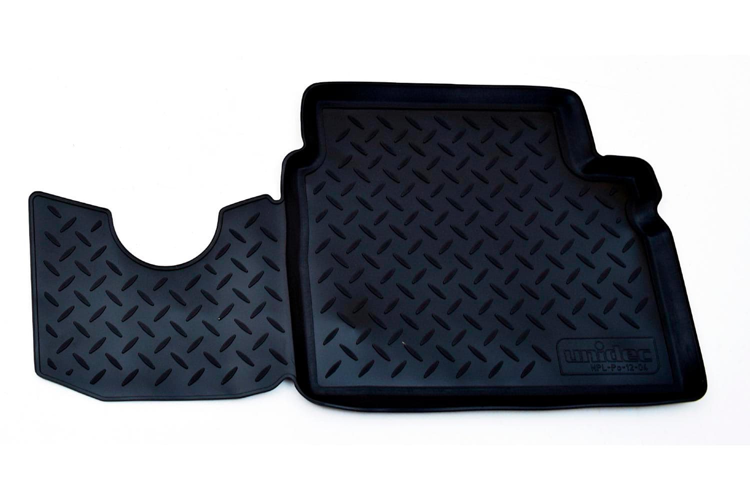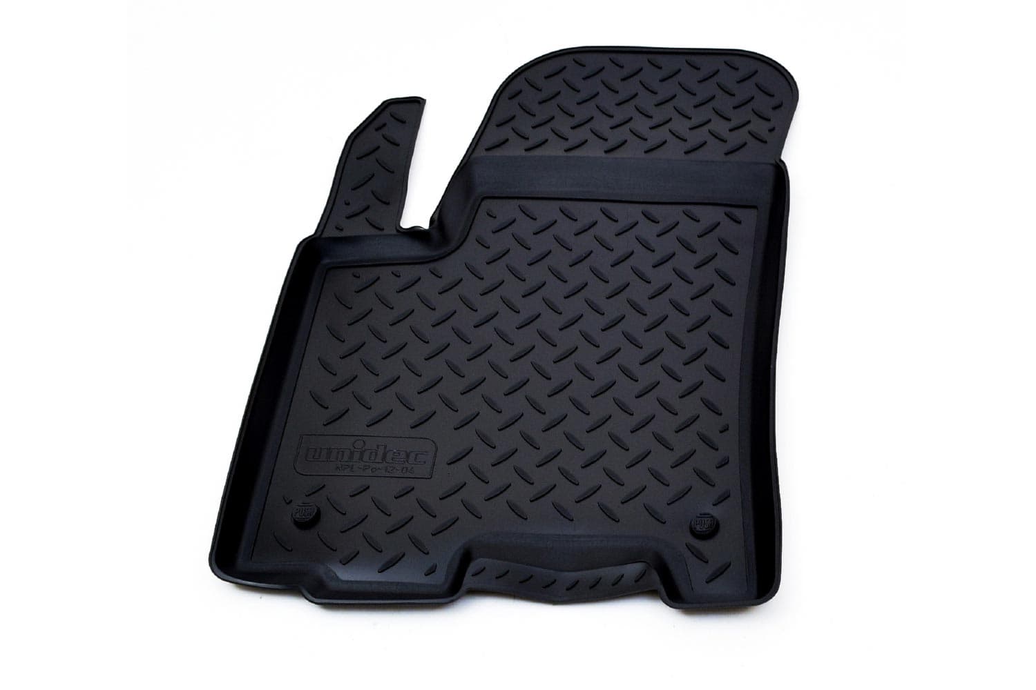 Имеют не скользящую поверхность и обеспечивают безопасное управление автомобилем, а также контролем ситуации на дороге. Изготавливаются из полиуретана, который по всем своим характеристикам превосходит резину. Во-первых, он обладает гораздо большим диапазоном твердости. Во-вторых, меньше подвержен стиранию и эластичен. В-третьих, он менее подвержен разрыву и деформациям. Коврик стоек к маслу, бензину и кислотам.