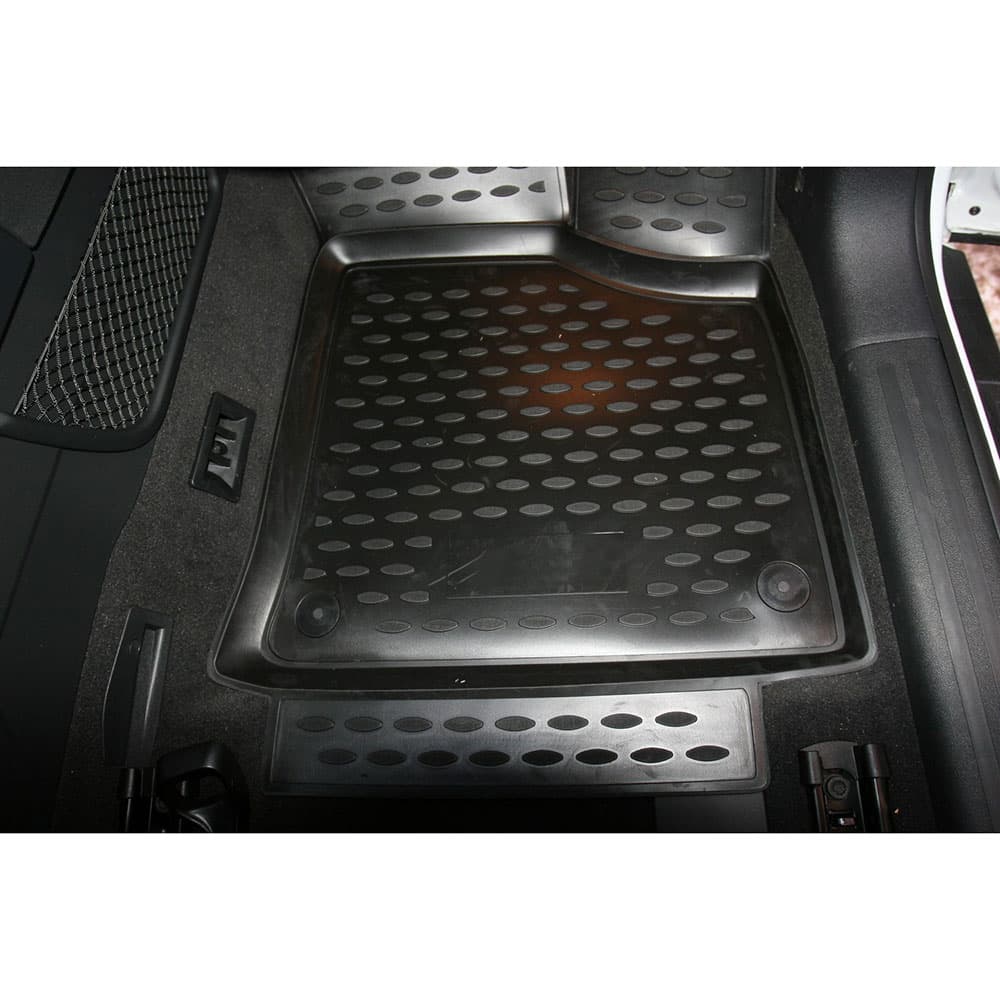 Эксплуатация. Полиуретановые коврики в два с половиной раза легче резиновых, сохраняют форму, легко вынимаются и укладываются на место. Легко моются, устойчивые к износу, идеально вписываются в интерьер. За счет свойств материала и профиля текстуры коврики не скользят. Форма передней части водительского ковра, уходящая под педаль акселератора, исключает нештатное зацепление педали за ковер. Коврики могут эксплуатироваться в самых суровых климатических условиях, сохраняя при этом физико-механические свойства.