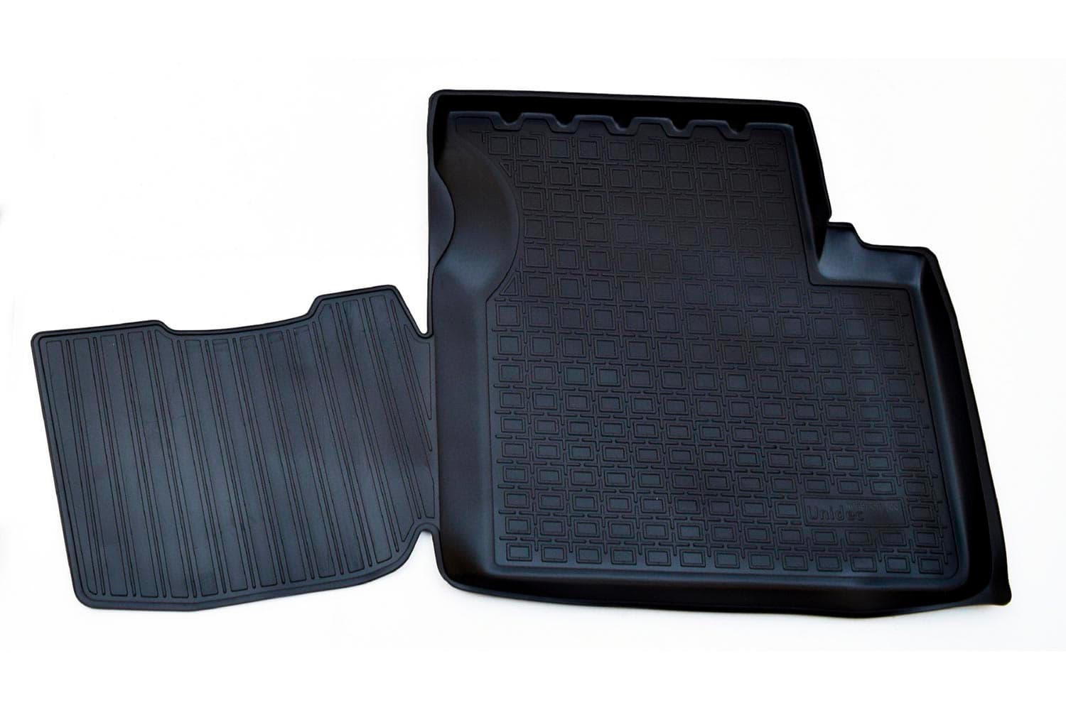 Разрабатываются точно под контуры конкретного автомобиля, что обеспечивает 100% идеальную применяемость. Они идеально прилегают к полу автомобиля в отведенном им месте.