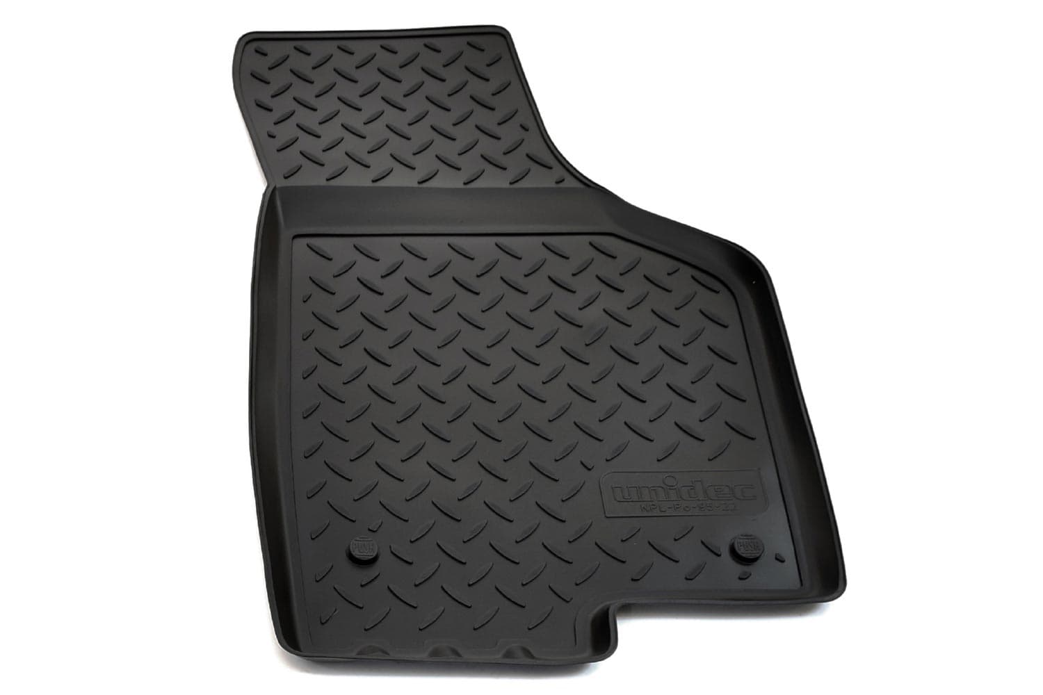 Имеют не скользящую поверхность и обеспечивают безопасное управление автомобилем, а также контролем ситуации на дороге. Изготавливаются из полиуретана, который по всем своим характеристикам превосходит резину. Во-первых, он обладает гораздо большим диапазоном твердости. Во-вторых, меньше подвержен стиранию и эластичен. В-третьих, он менее подвержен разрыву и деформациям. Коврик стоек к маслу, бензину и кислотам.