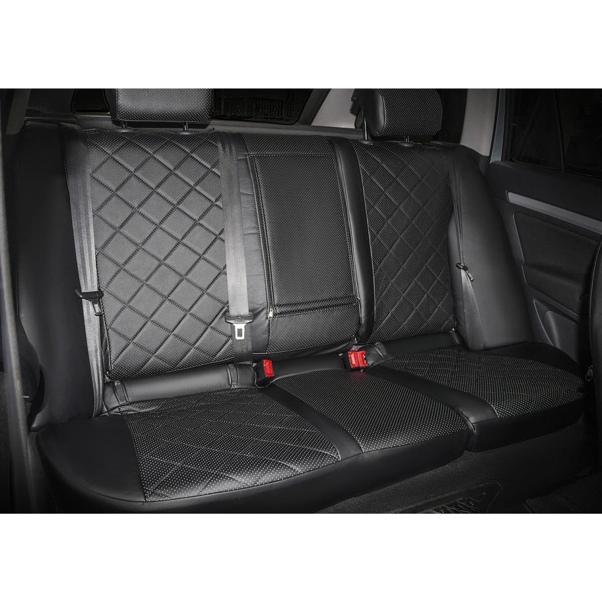 Материал: экокожа; цвет: черный; узор: ромб; особенности салона: задняя спинка цельная