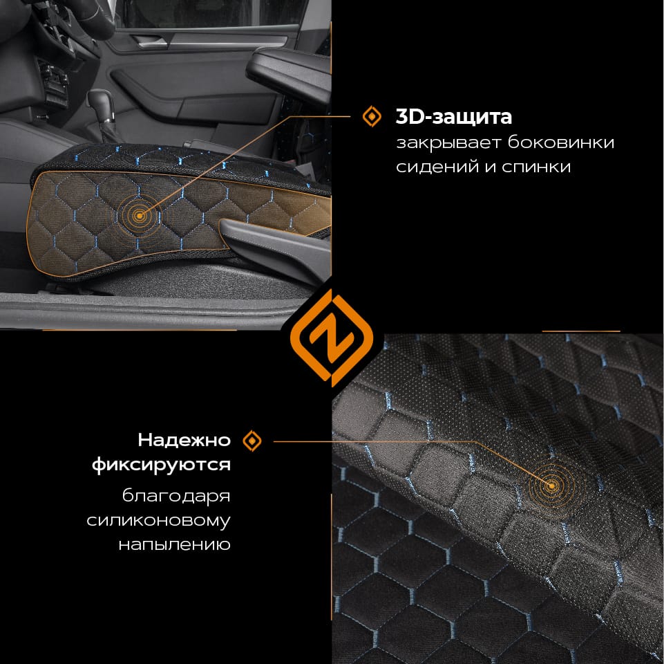 Накидка универсальная алькантара с боковой защитой (черный) черные соты (передний ряд сидений)