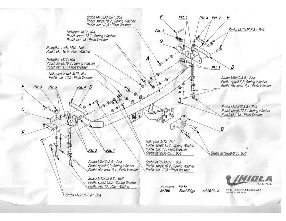 Польский фаркоп Imiola с фланцевым креплением на 2-х болтах (тип шара F), вырез в бампере при установке не нужен, электрика в комплекте, максимально разрешенная масса прицепа 1600 кг.