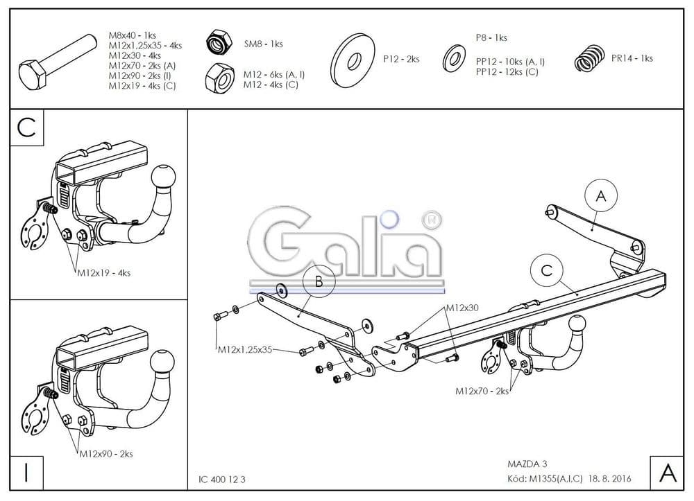 Оцинкованный фаркоп Galia (Словения) с условно съемным крюком на 2-х болтах (тип шара A), вырез в бампере при установке нужен, электрика приобретается отдельно, максимально разрешенная масса прицепа 1900 кг.