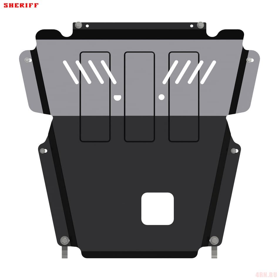 Защита картера Sheriff нужна для сохранности узлов и агрегатов, находящихся на днище авто. Она надежно защитит двигательный отсек вашей машины от повреждений. Также она защищает моторный отсек от влаги, грязи, и предусматривает наличие металлических крыльев, которые выполняют функцию пыльника.