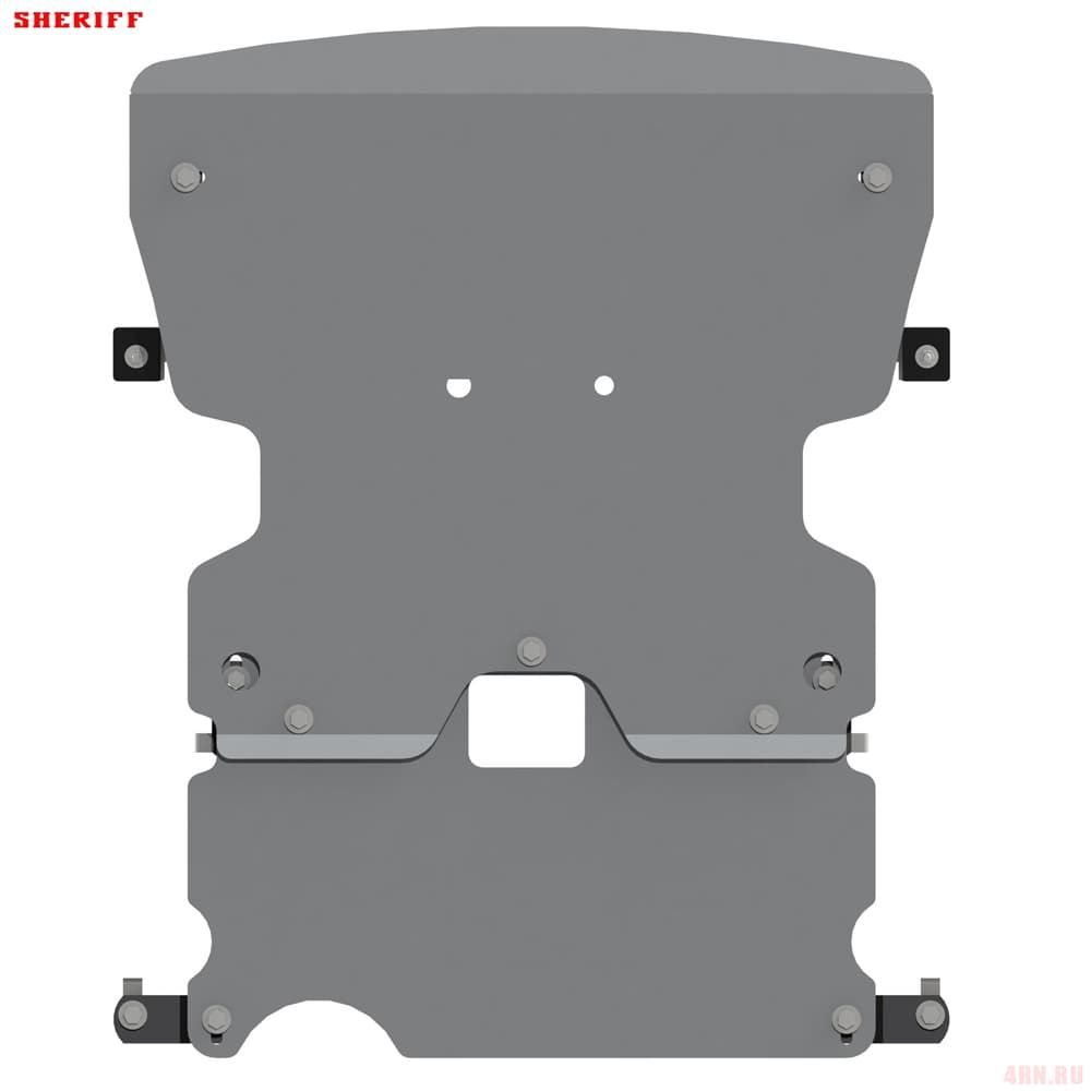 Защита картера Sheriff нужна для сохранности узлов и агрегатов, находящихся на днище авто. Она надежно защитит двигательный отсек вашего автомобиля от повреждений. Также она защищает моторный отсек от влаги и грязи, и предусматривает наличие металлических крыльев, которые выполняют функцию пыльника.