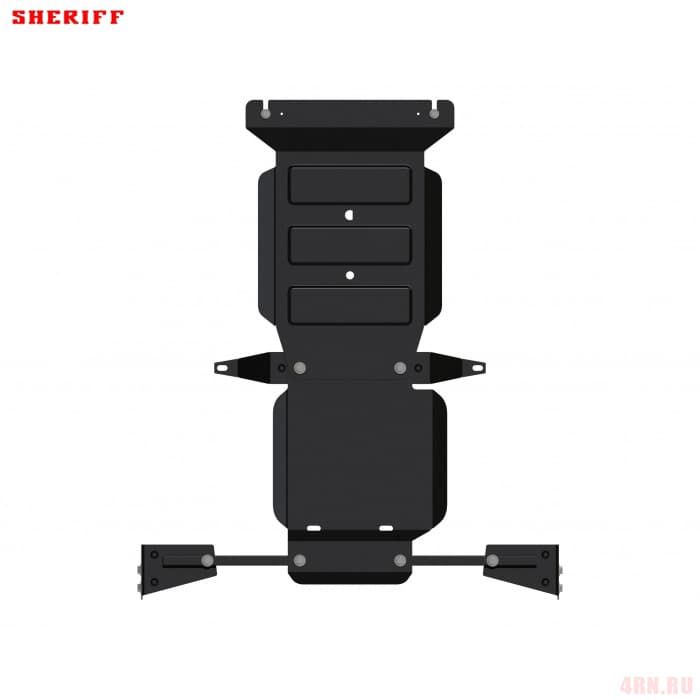 Защита картера Sheriff нужна для сохранности узлов и агрегатов, находящихся на днище авто. Она надежно защитит двигательный отсек вашей машины от повреждений. Также она защищает моторный отсек от влаги, грязи, и предусматривает наличие металлических крыльев, которые выполняют функцию пыльника.