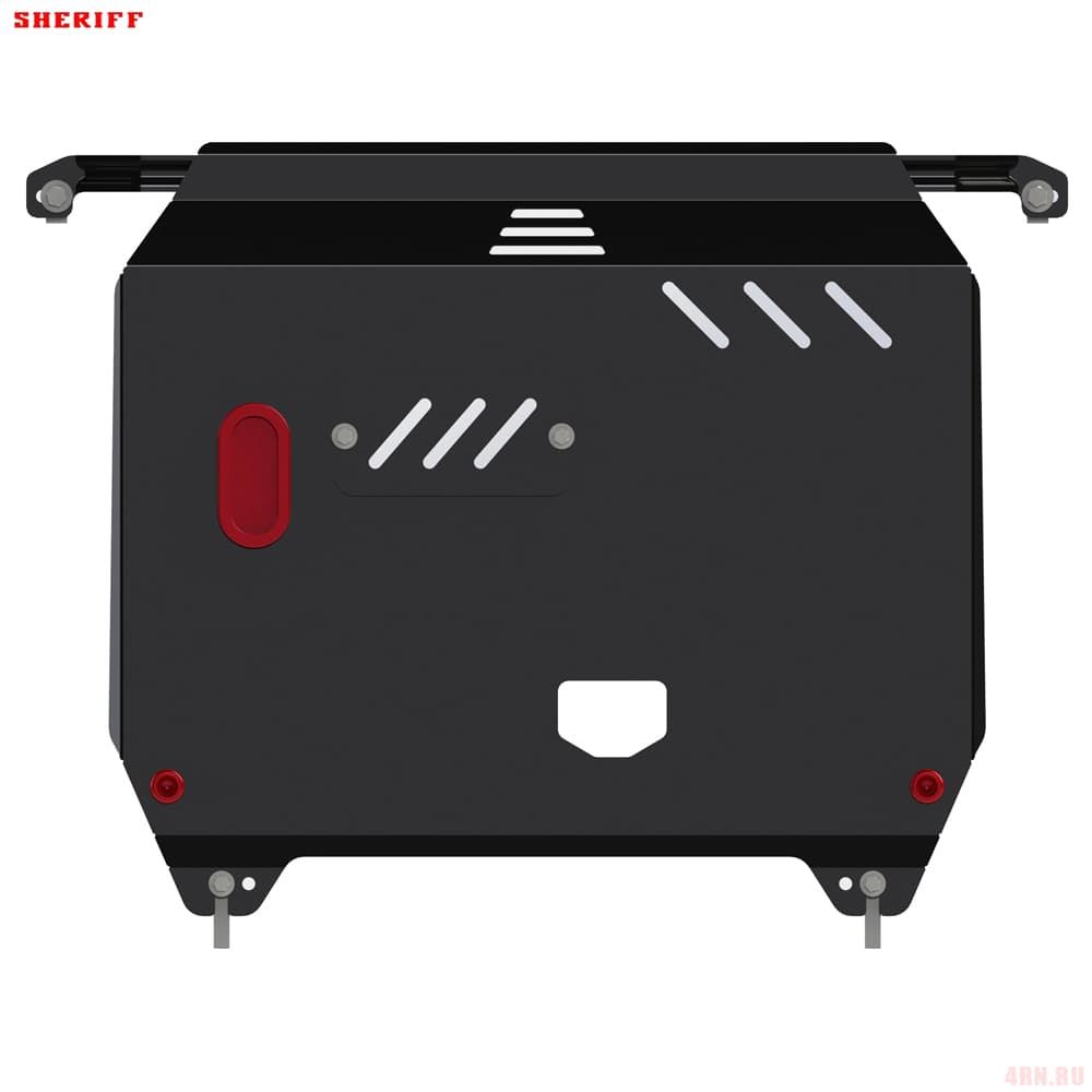 Защита картера Sheriff нужна для сохранности узлов и агрегатов, находящихся на днище авто. Она надежно защитит двигательный отсек вашей машины от повреждений. Также она защищает моторный отсек от влаги, грязи, и предусматривает наличие металлических крыльев, которые выполняют функцию пыльника.