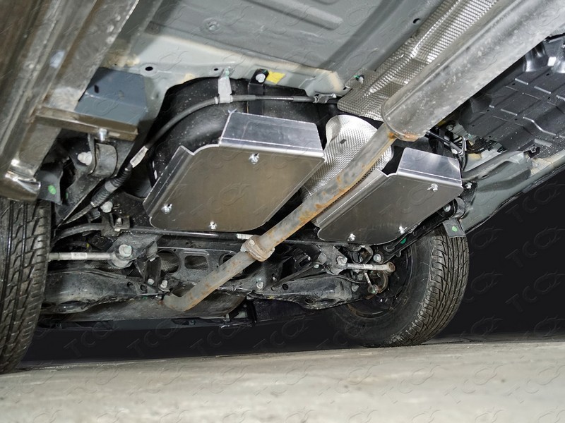 Алюминиевая защита топливного бака артикул ZKTCC00401 от российского производителя ТСС. Подходит для Джили Эмгранд Х7 2018, 2019х годов выпуска. Защита состоит из одного листа и крепежа в комплекте Алюминия толщиной 4,0 мм достаточно для комфортного передвижения без опасений за автомобиль, вес ее 12 кг.