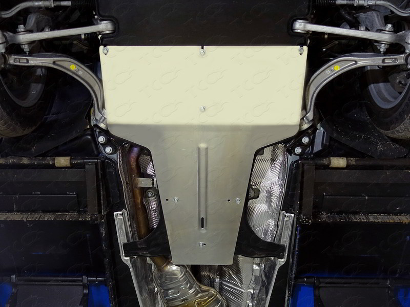 Алюминиевая защита коробки передач, раздаточной коробки артикул ZKTCC00307 от российского производителя ТСС. Подходит для Ауди Q5 2017, 2018, 2019х годов выпуска. Защита состоит из одного листа и крепежа в комплекте Алюминия толщиной 4,0 мм достаточно для комфортного передвижения без опасений за автомобиль, вес ее 12 кг.
