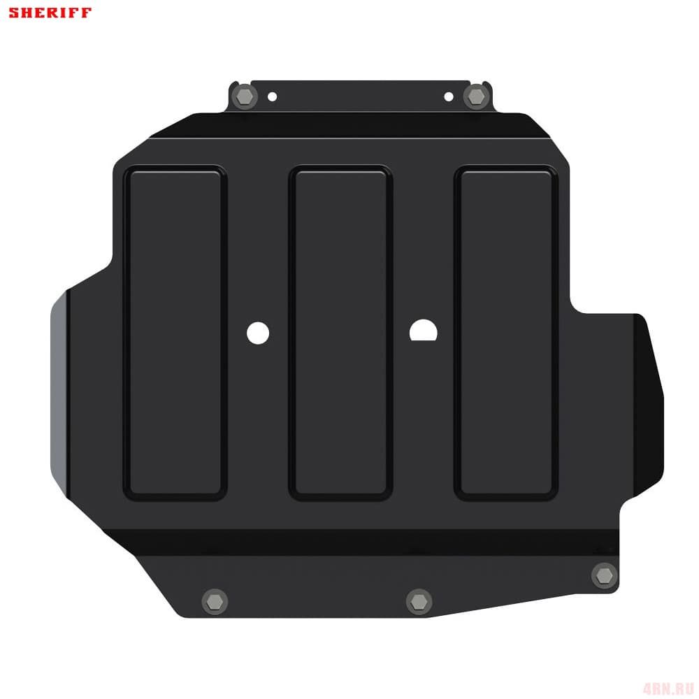 Защита картера Sheriff нужна для сохранности узлов и агрегатов, находящихся на днище авто. Она надежно защитит двигательный отсек вашей машины от повреждений. Также она защищает моторный отсек от влаги, грязи, и предусматривает наличие металлических крыльев, которые выполняют функцию пыльника.