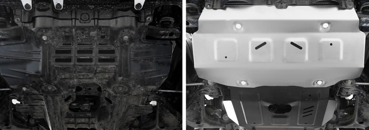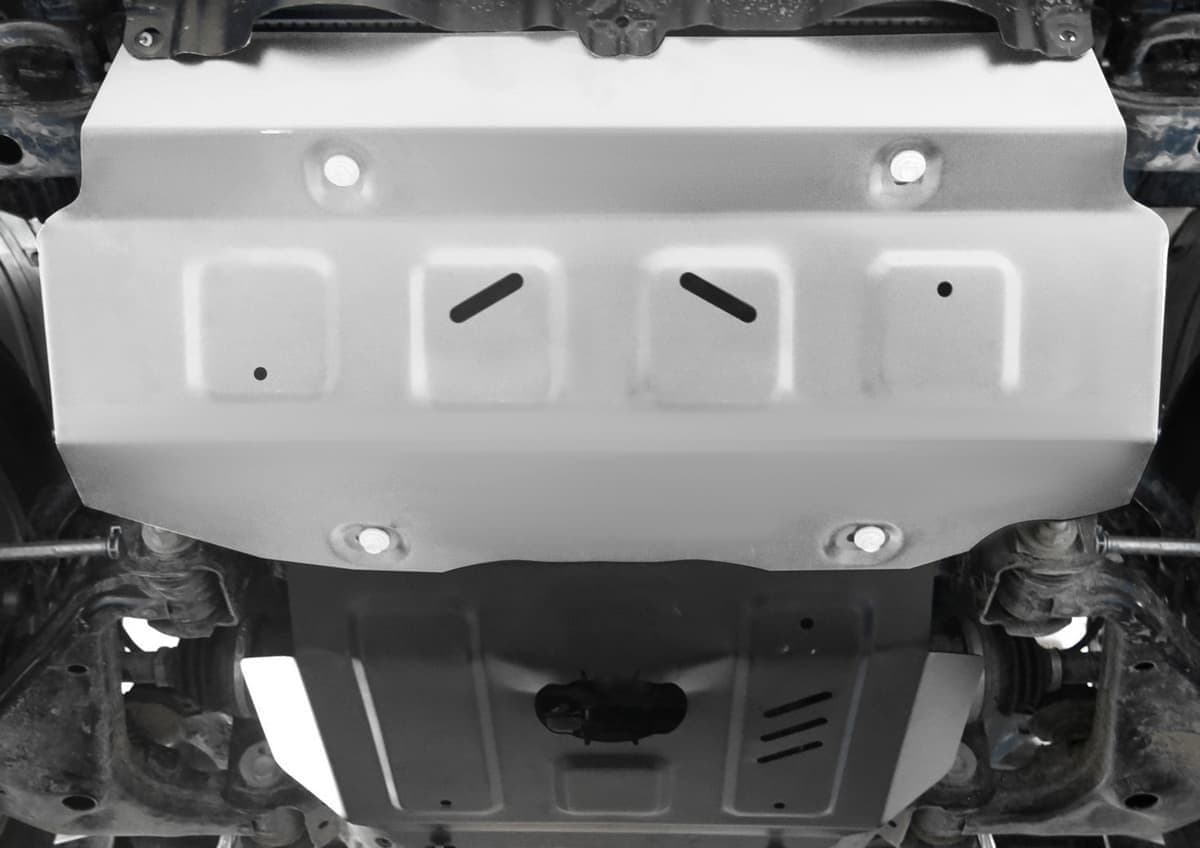 Стойкое порошковое окрашивание позволяет сохранить внешний вид, защитит от царапин, предотвратит коррозию. Также имеется утопленный крепеж для предотвращения срывов. Крепеж не образует с алюминием гальваническую пару. Защита спроектирована индивидуально для автомобиля, что позволяет устанавливать ее в штатные места без доработки кузова за 10 мин.