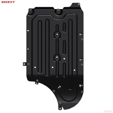Защита картера Sheriff нужна для сохранности узлов и агрегатов, находящихся на днище авто. Она надежно защитит двигательный отсек вашей машины от повреждений. Также она защищает моторный отсек от влаги, грязи, и предусматривает наличие металлических крыльев, которые выполняют функцию пыльника.