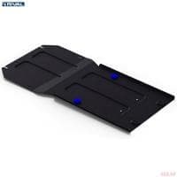 Порошковое окрашивание гарантирует долгий срок службы. А глубокий штамп увеличивает жесткость до 2,5 раз. Также имеется утопленный крепеж для предотвращения срывов. Качественная покраска защиты картера выдерживает 720 часов соляного тумана. Толщина изделия составляет 2-6 мм. Подштамповка в местах крепления предохраняет крепеж от срезания. Деталь спроектирована индивидуально для вашего автомобиля, что позволяет устанавливать ее в штатные места без доработки кузова за 10 мин.