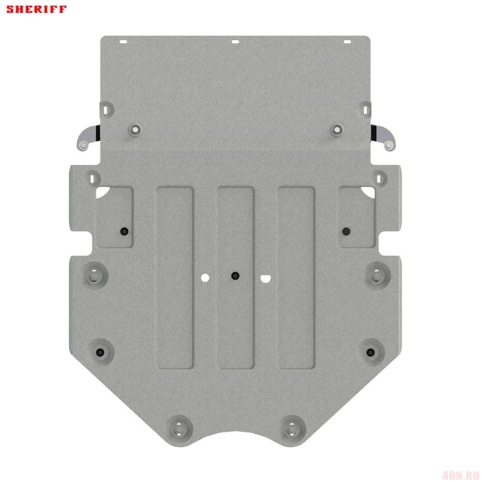 Защита картера Sheriff нужна для сохранности узлов и агрегатов, находящихся на днище авто. Она надежно защитит двигательный отсек вашего автомобиля от повреждений. Также она защищает моторный отсек от влаги и грязи, и предусматривает наличие металлических крыльев, которые выполняют функцию пыльника.