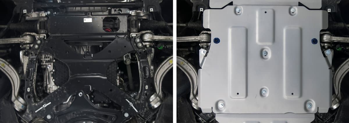 Стойкое порошковое окрашивание позволяет сохранить внешний вид, защитит от царапин, предотвратит коррозию. Также имеется утопленный крепеж для предотвращения срывов. Крепеж не образует с алюминием гальваническую пару. Защита спроектирована индивидуально для автомобиля, что позволяет устанавливать ее в штатные места без доработки кузова за 10 мин.