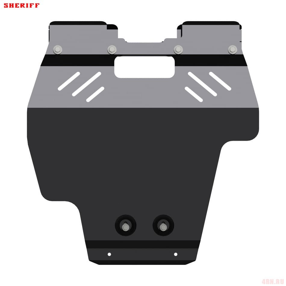 Защита картера Sheriff нужна для сохранности узлов и агрегатов, находящихся на днище авто. Она надежно защитит двигательный отсек вашей машины от повреждений. Также она защищает моторный отсек от влаги, грязи, и предусматривает наличие металлических крыльев, которые выполняют функцию пыльника.